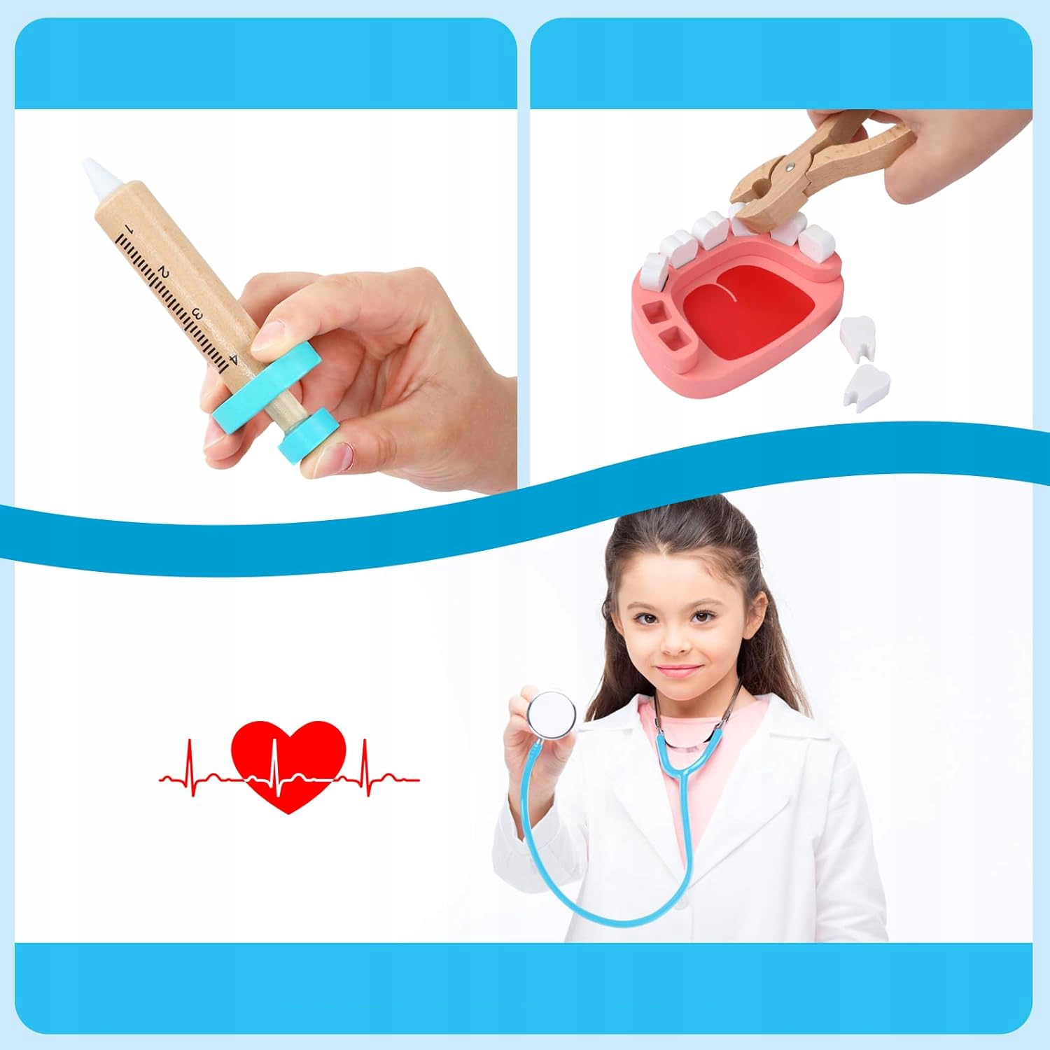 ✅Zestaw Małego Dentysty z drewna to edukacyjna zabawka, która rozwija wyobraźnię, empatię i zdolności manualne u dzieci w wieku od 3 lat. W komplecie znajdują się aż 44 elementy, które wiernie odwzorowują przybory stomatologiczne w bezpiecznej, dziecięcej wersji. Dzięki realistycznym akcesoriom maluch może wcielić się w rolę dentysty, oswajając się z tematem higieny jamy ustnej i wizyt u lekarza.