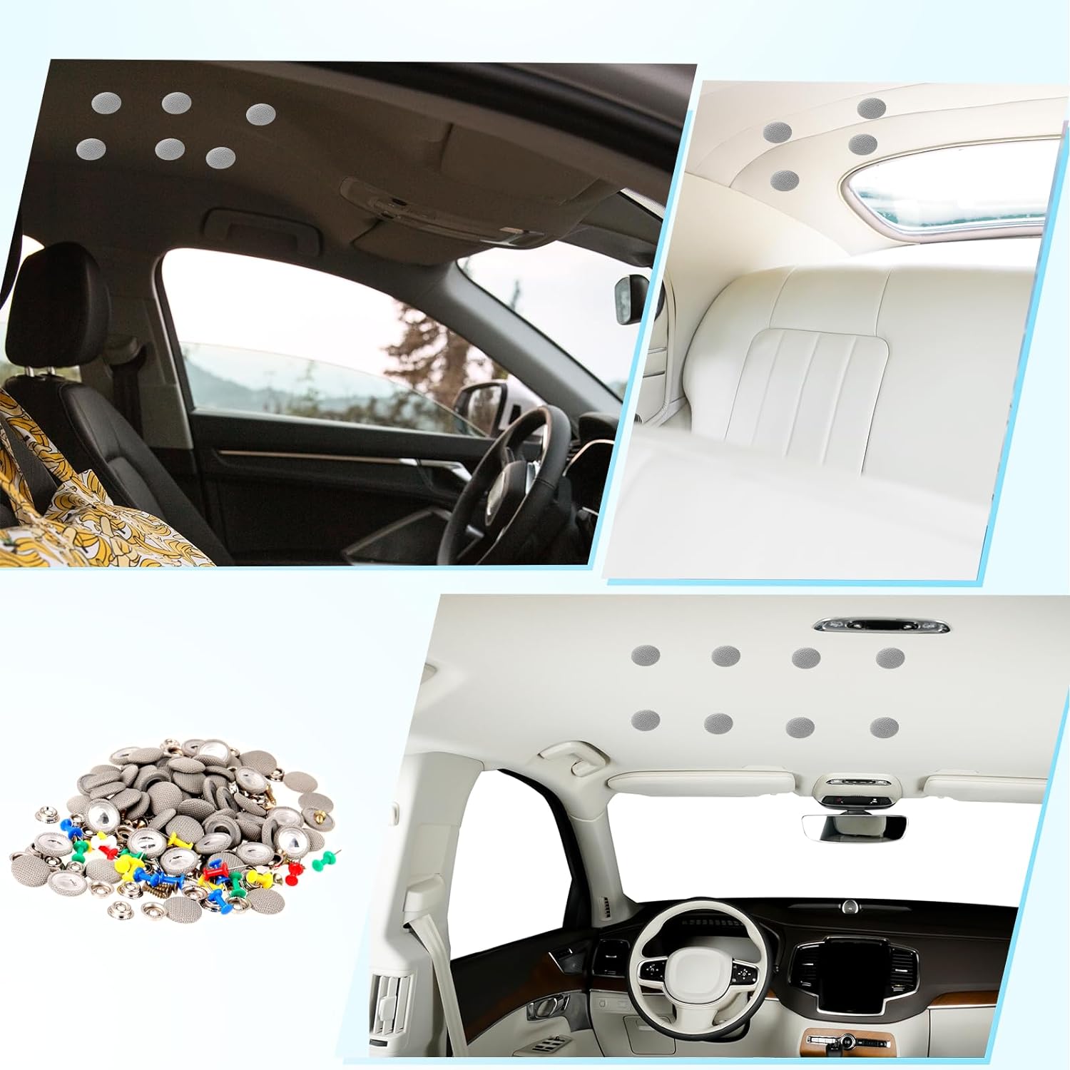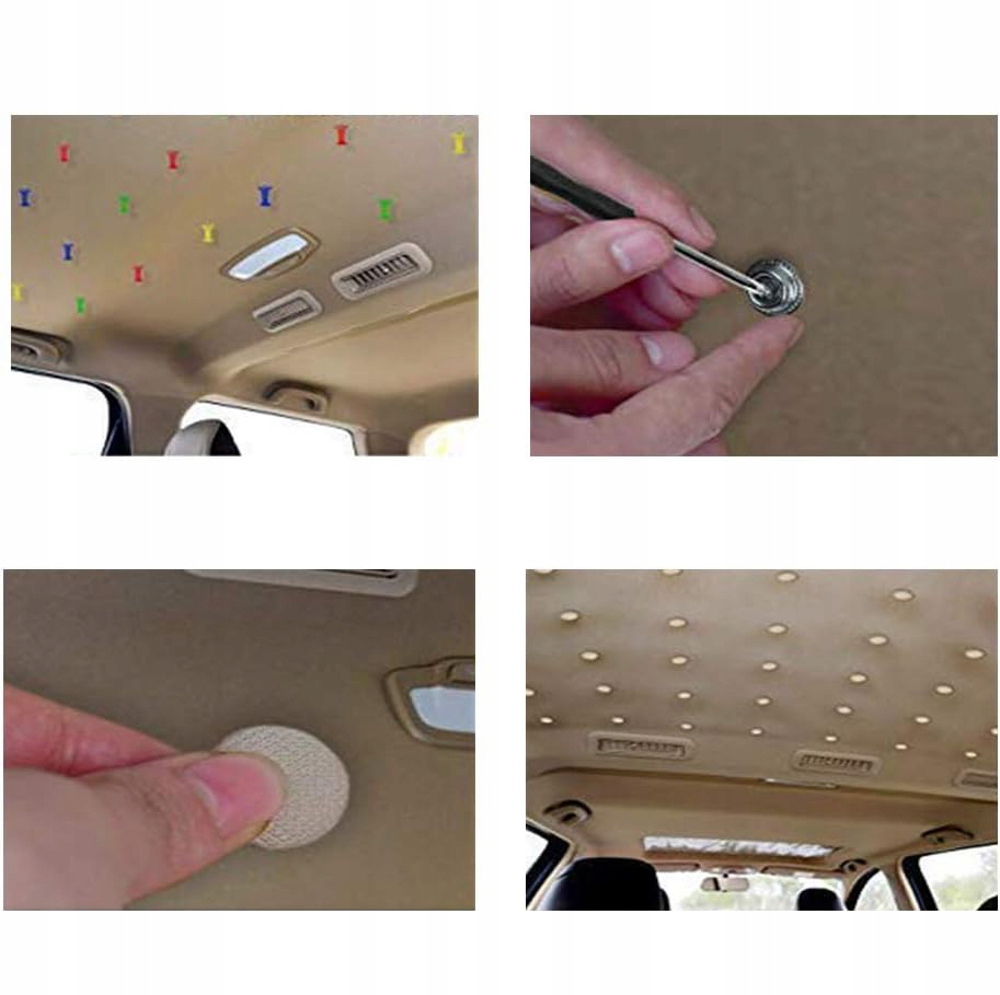Niezależnie od tego, czy jeździsz małym miejskim autkiem, luksusowym SUV-em czy sportowym roadsterem, ten zestaw idealnie dopasuje się do każdego rodzaju samochodu. � Personalizuj Z Kolorowymi Pinezkami 🎨 W zestawie znajdziesz różnokolorowe pinezki, które umożliwiają dostosowanie wyglądu naprawy do Twojego wnętrza. Stwórz przyciągający wzrok kontrast lub harmonijną kompozycję z kolorem podsufitki. ⛅ Odporność Na Warunki Pogodowe ⛅ Nity naprawcze wykonane z wytrzymałej tkaniny siatkowej i pokryte antykorozyjną powłoką, gwarantują długotrwałą odporność na warunki atmosferyczne. 💰 Oszczędność Czasu i Pieniędzy 💰 Uniknij drogich wizyt u mechanika samochodowego dzięki temu zestawowi. Wykonaj trwałą naprawę samodzielnie, oszczędzając zarówno czas, jak i pieniądze.