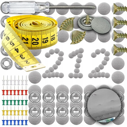 ✔️ Bez specjalistycznych narzędzi - Nie musisz posiadać zaawansowanych narzędzi ani doświadczenia w mechanice samochodowej. Montaż można przeprowadzić samodzielnie, oszczędzając zarówno czas, jak i pieniądze. ✔️ Kompletny zestaw - Nasz zestaw zawiera aż 70 sztuk szarych nitów naprawczych, 70 sztuk kolorowych pinezek, jeden śrubokręt oraz metr - wszystkie niezbędne elementy do skutecznej naprawy podsufitki. ✔️ Uniwersalna kompatybilność - Ten zestaw do naprawy podsufitki jest odpowiedni dla większości typów samochodów, co oznacza, że możesz go użyć do naprawy każdego pojazdu w swoim garażu.