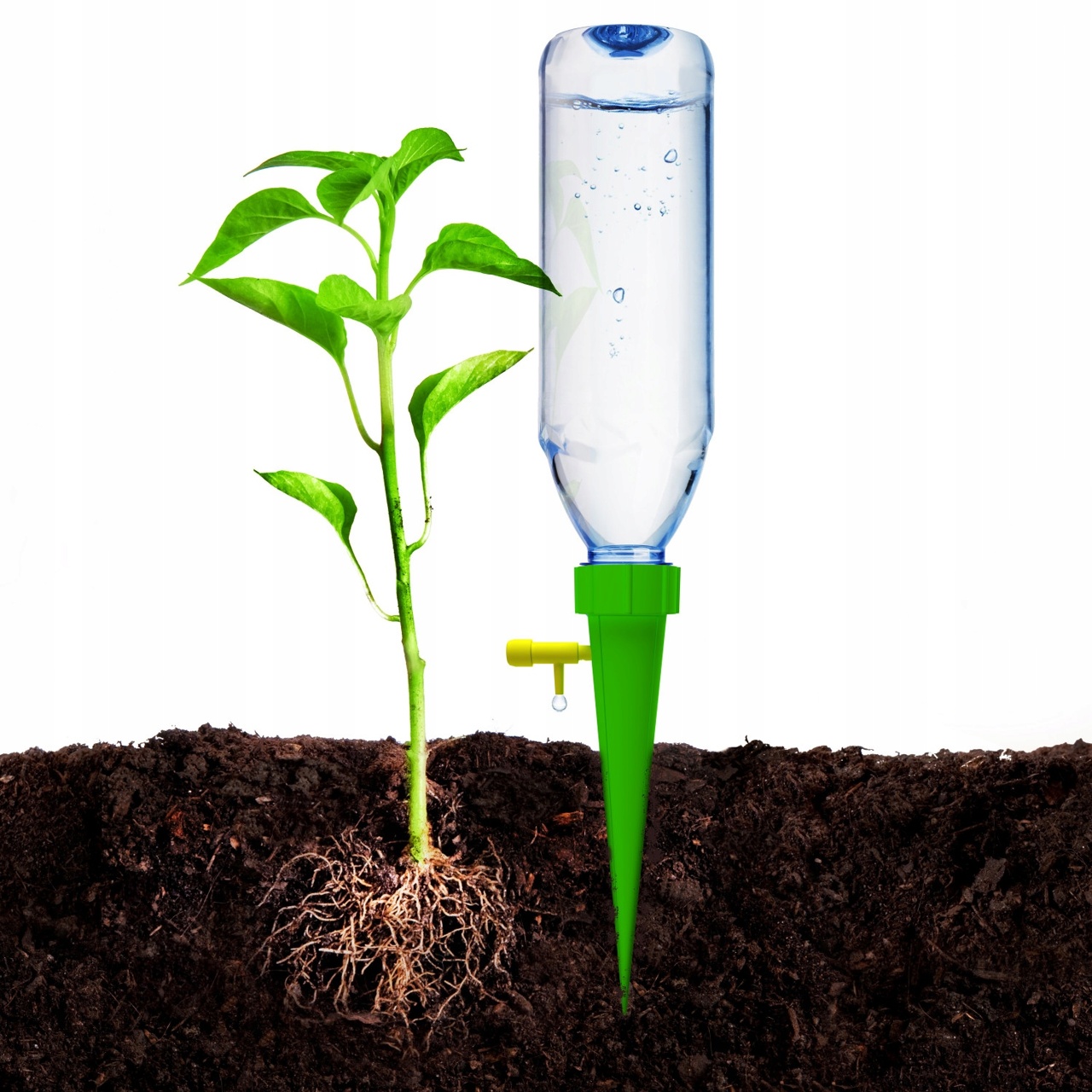 - Urządzenie to dostarcza wodę roślinie w momencie jej potrzeby, nie doprowadzając do przelania wody w doniczce.
