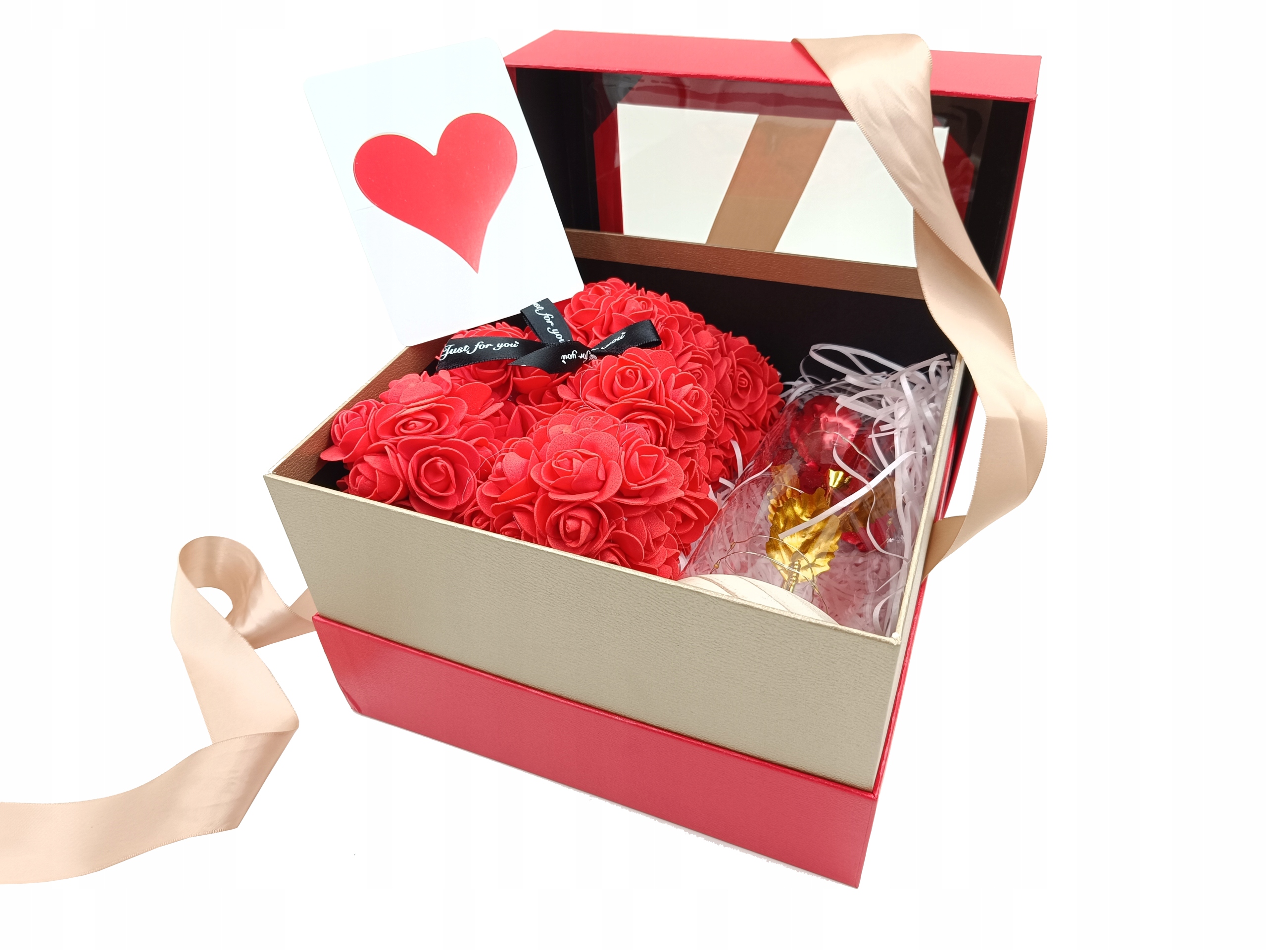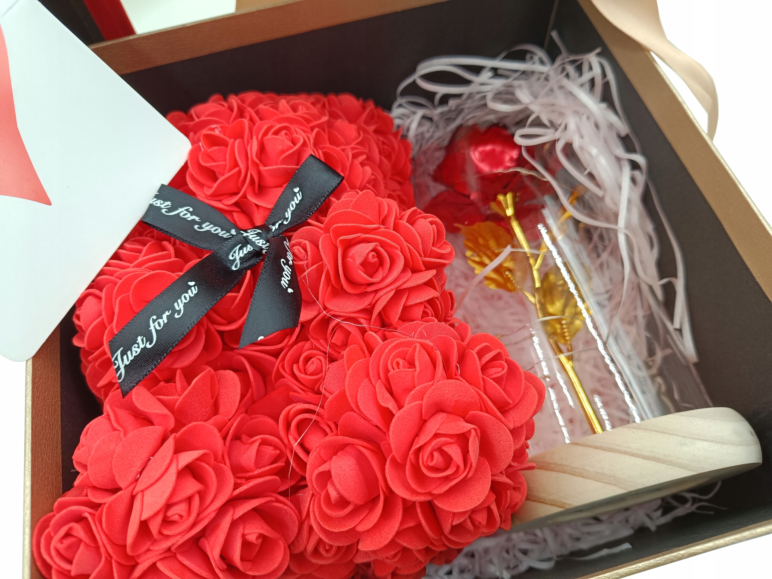 ZESTAW WIECZNA RÓŻA W SZKLE LED MIŚ Z RÓŻ DLA NAUCZYCIELKI ZAKOŃCZENIE ROKU