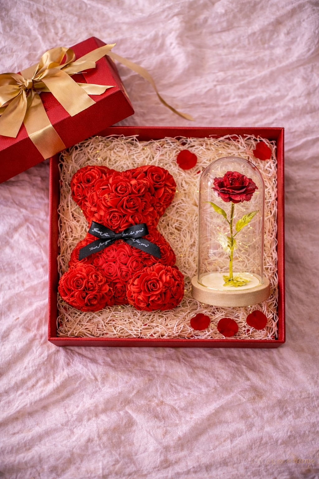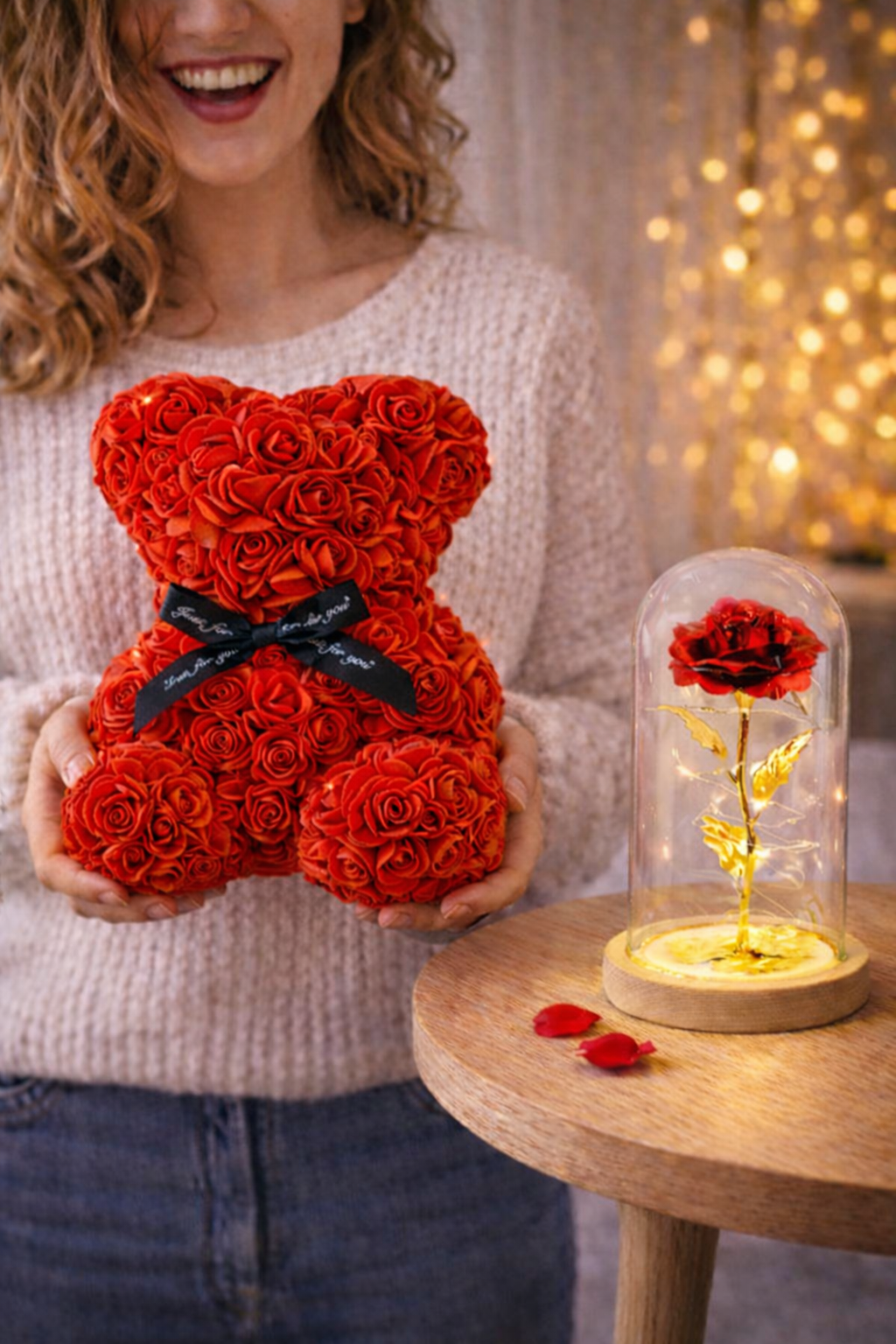 Podaruj ukochanej osobie kwiat, który nigdy nie zwiędnie, tak jak Twoje uczucia! Delikatne, ciepłe światło sprawia, że róża będzie rozświetlać każdą chwilę, tworząc romantyczny nastrój w każdym wnętrzu.🐻 Miś z róż – urocza niespodzianka pełna miłości! 🐻